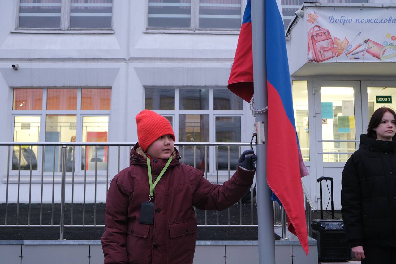Право поднять Государственный флаг Российской Федерации на этой неделе представилось ученику 5 «А» Батыю и ученику 7 «Д» Андрею