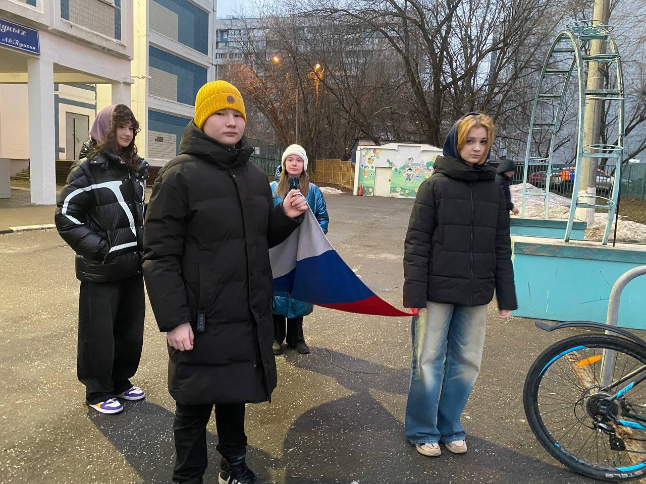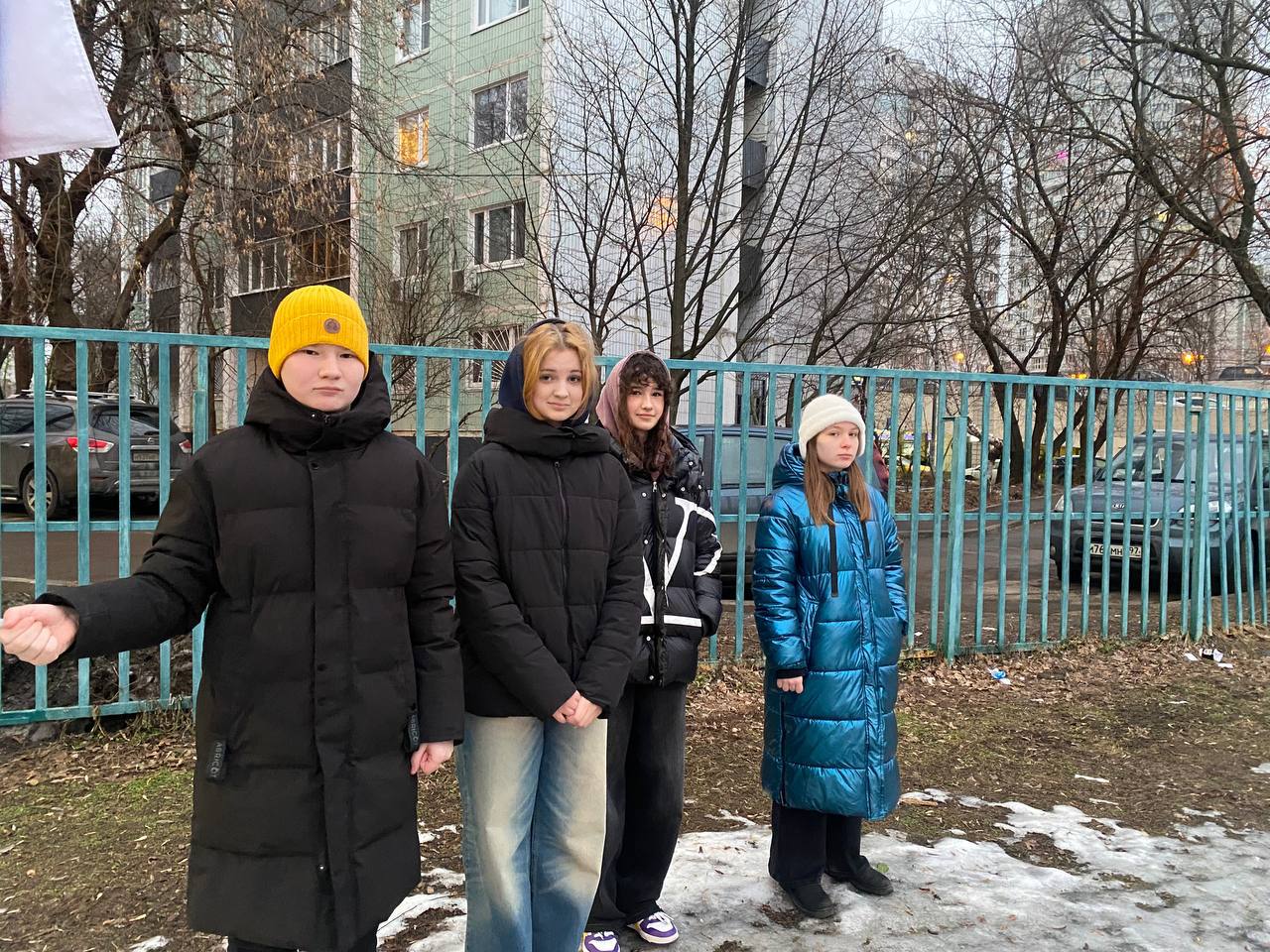 В составе знаменной группы ученики 7 «Д»: Вероника, Арина, Андрей, Арина