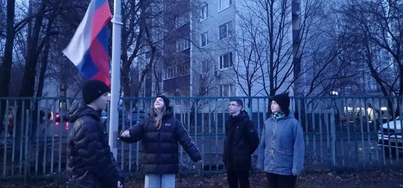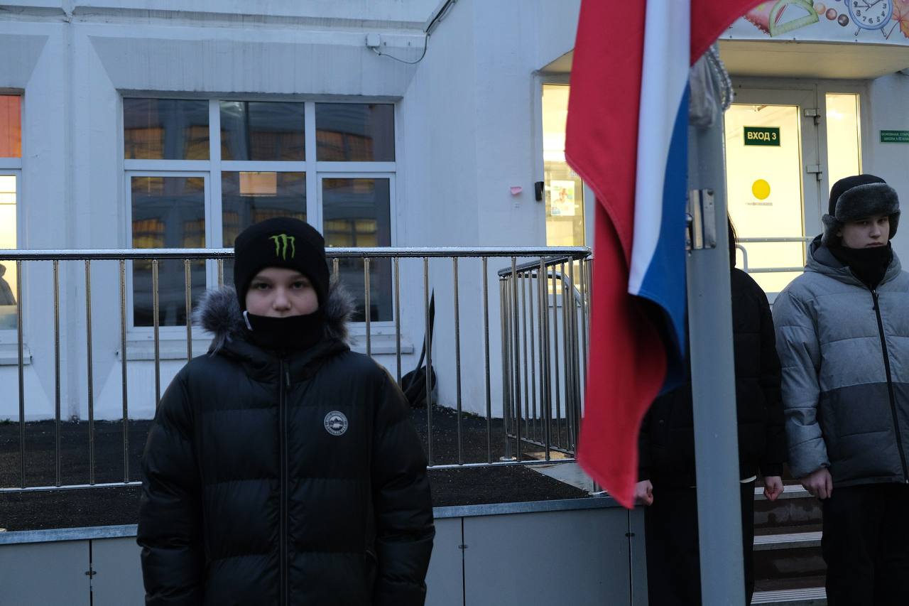 Право поднять Государственный флаг Российской Федерации на этой неделе представилось ученику 6 «В» Даниилу и ученице 8 «Г» Веронике