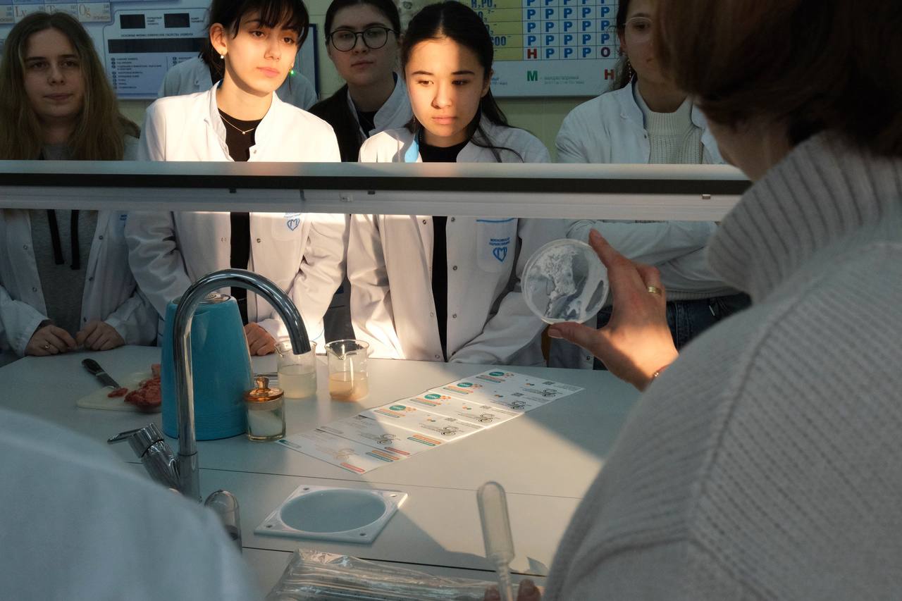 Особый интерес у наших будущих врачей вызвал мастер-класс, который позволил не только узнать «Почему мясо красное?», но и оценить термоустойчивость молока для производства продуктов для детского питания!