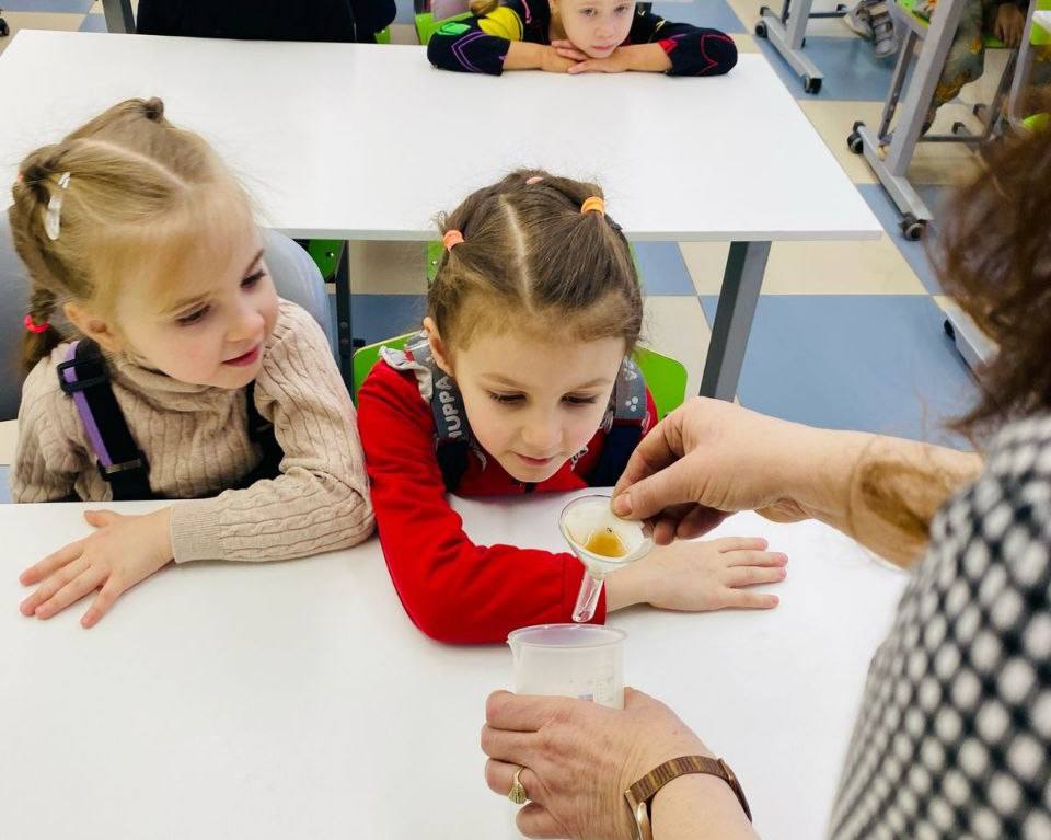 На занятиях по химии малыши познакомились с основами смешивания веществ. Опыты с цветными растворами и пузырьками, которые буквально взрывались от восторга детей!