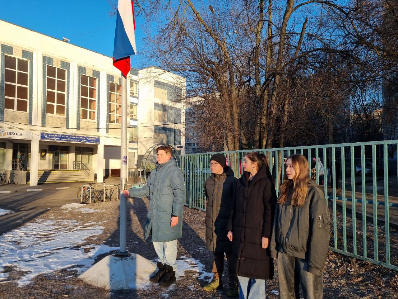В составе знаменной группы ученики 9 «К»: Варвара, Егор, Ясмина, Нона.