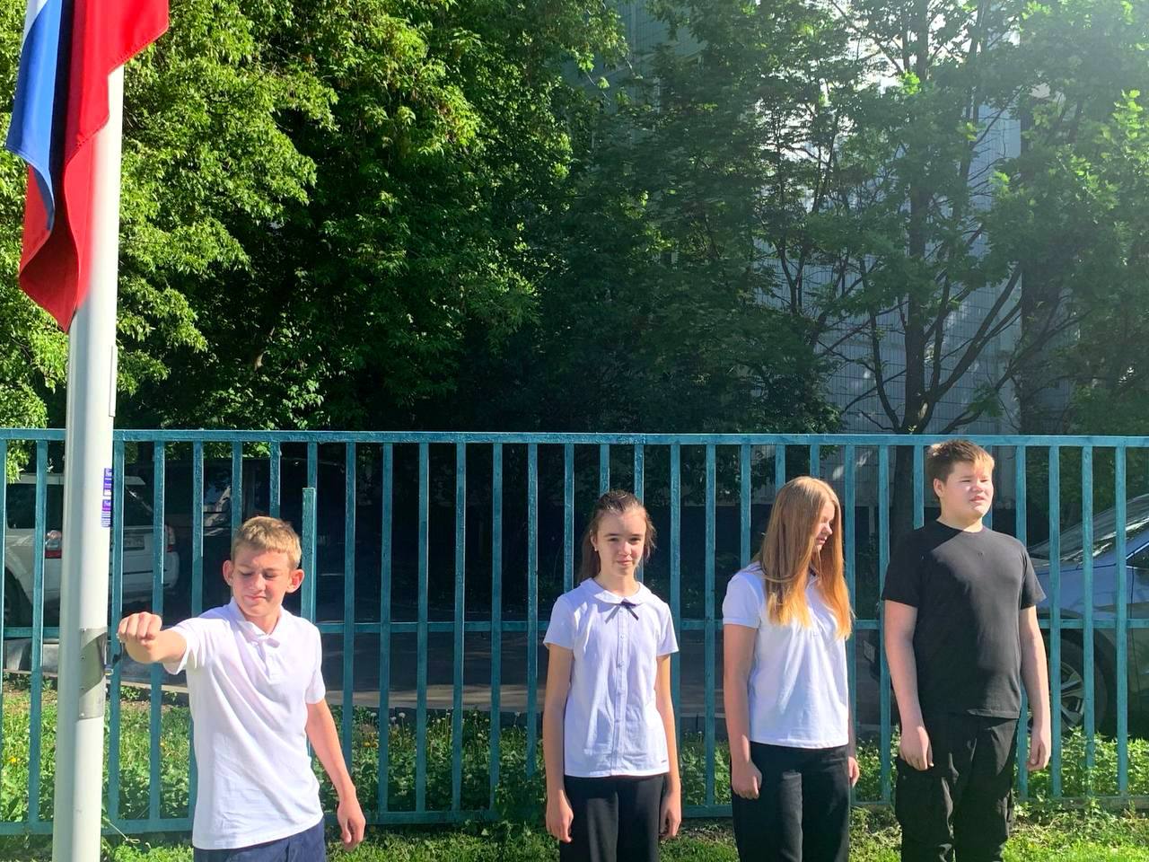 Право поднять Государственный флаг Российской Федерации на этой неделе представилось ученице 4 «А» Елизавете и ученику 7 «Д» Борису.